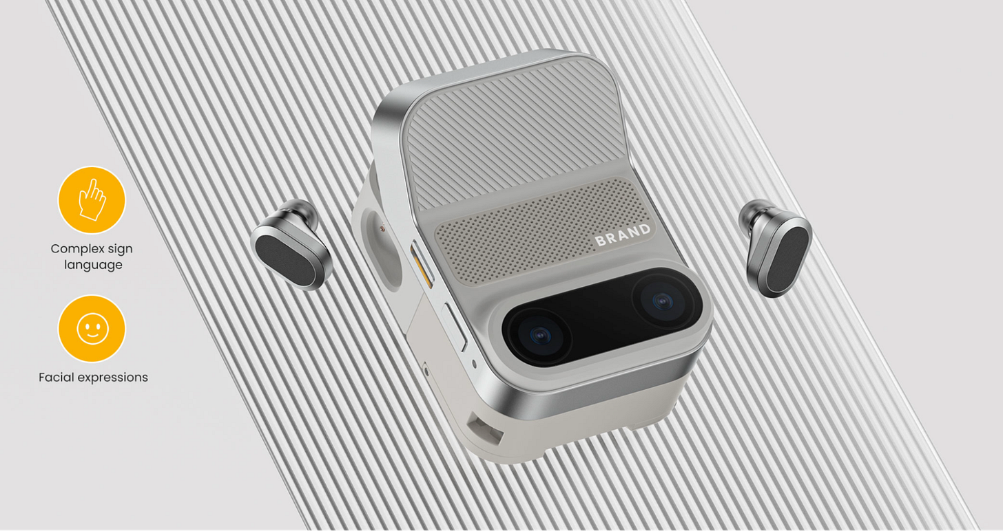 Visually, Echo Bridge is a compact set of devices: a desktop base unit paired with two wireless terminals. The base unit is equipped with two wide‑angle cameras and one overhead camera with radar, allowing it to “see” the user’s gestures, facial expressions, and lip movements from multiple angles at once. For sign languages, these details are not “auxiliary information” — they are part of the language itself. True silent expression is usually formed by the combination of hand movements, facial expressions, and mouth shapes together.